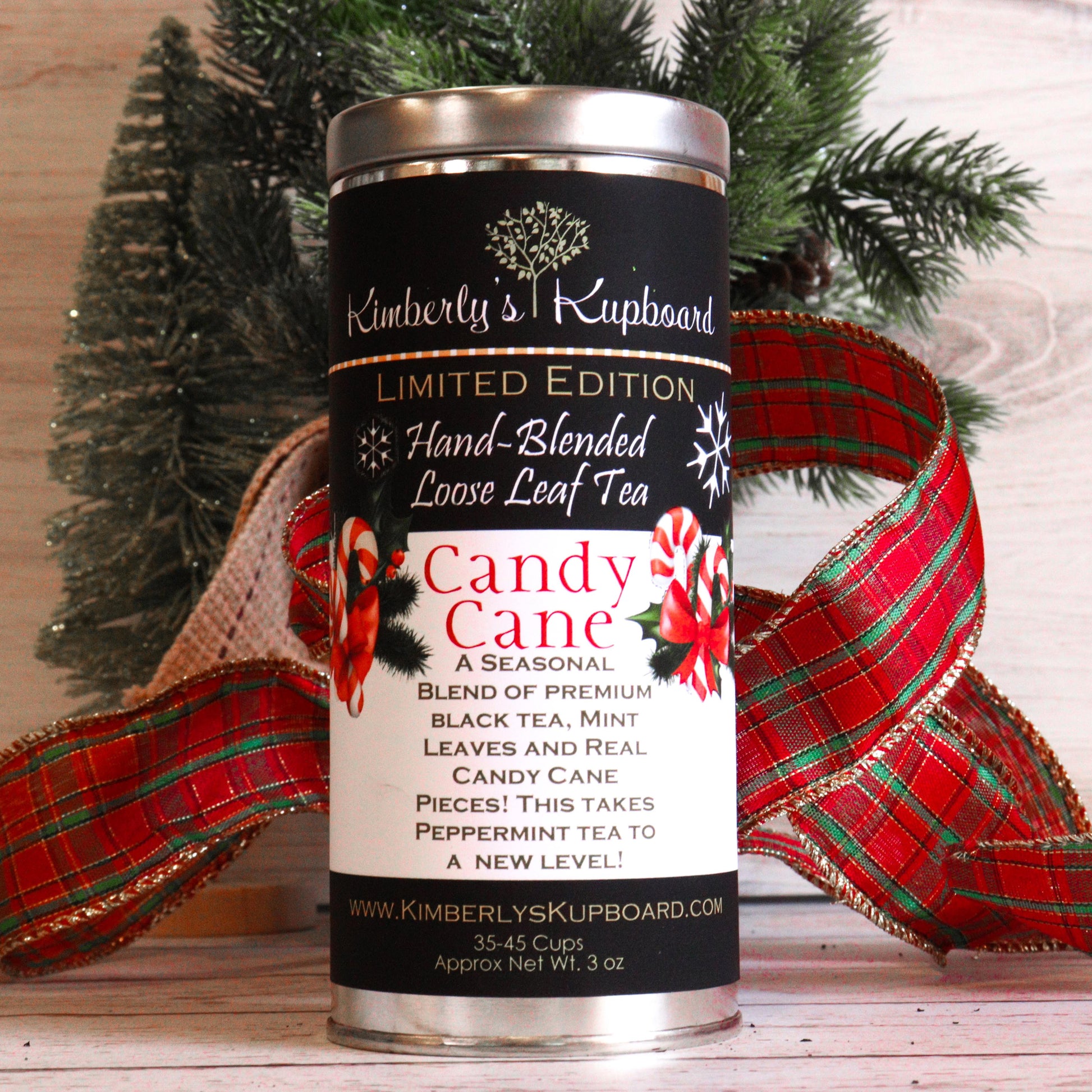 Candy Cane Tea with Prium Black Tea, Organic Peppermint and Organic Spearmint and Real Cand Cane pieces! A delightful, refreshing, and invigorating blend of mints.
