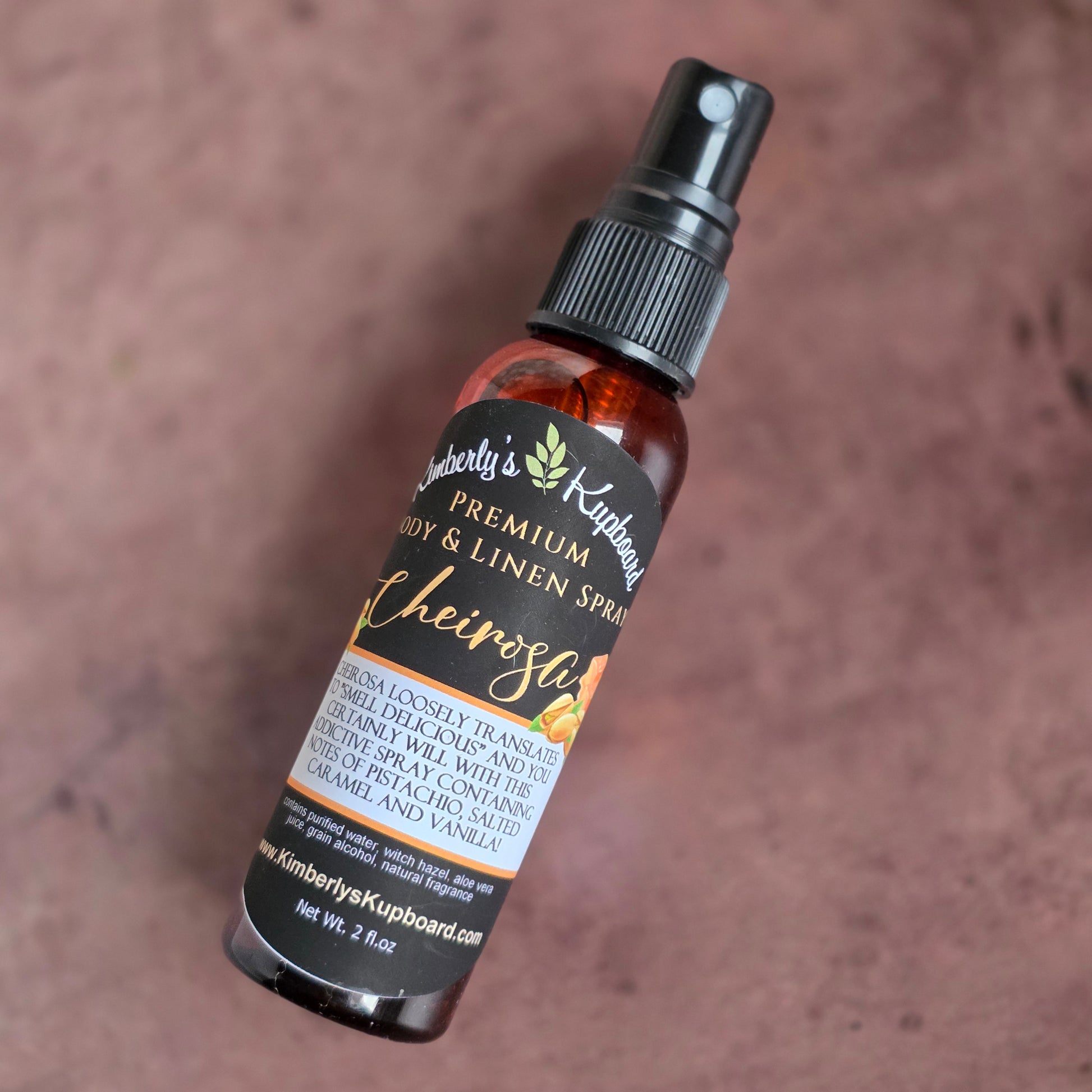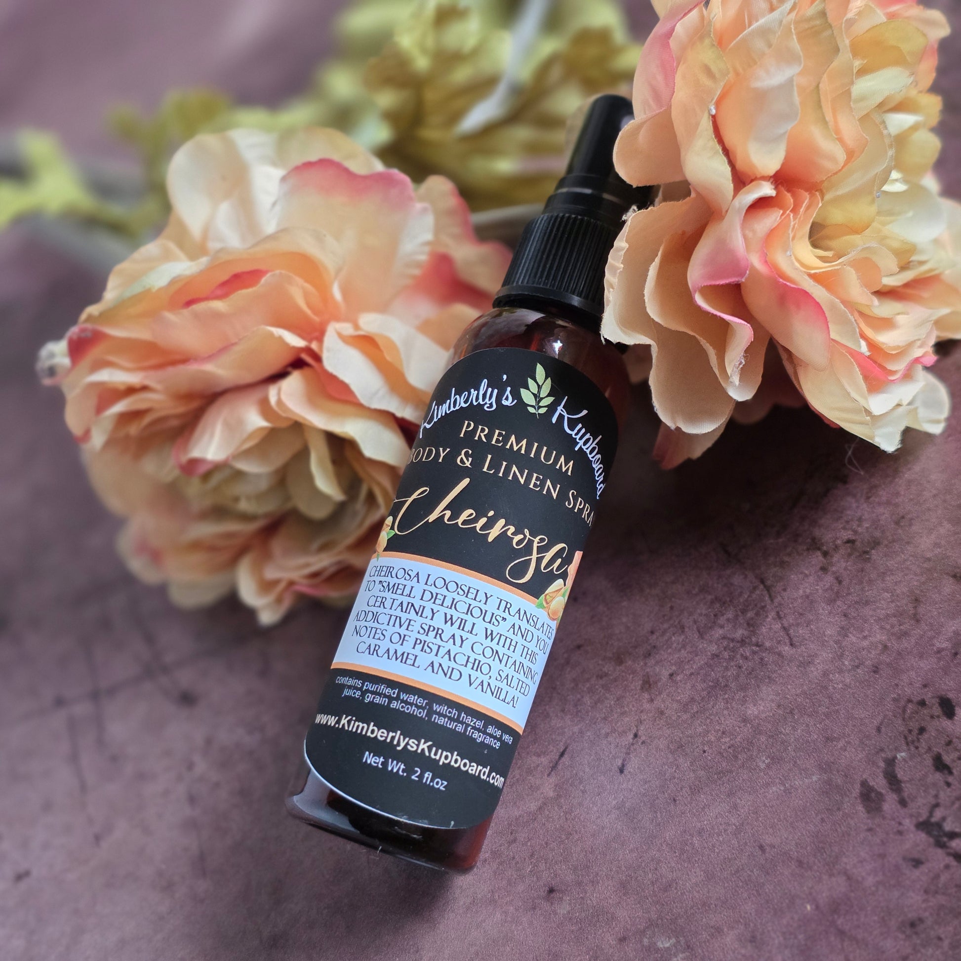NEW! Cheirosa (pronounced share-osa) premium body and Linen Spray is a decadent and rich blend with notes of pistachio, salted caramel and vanilla!