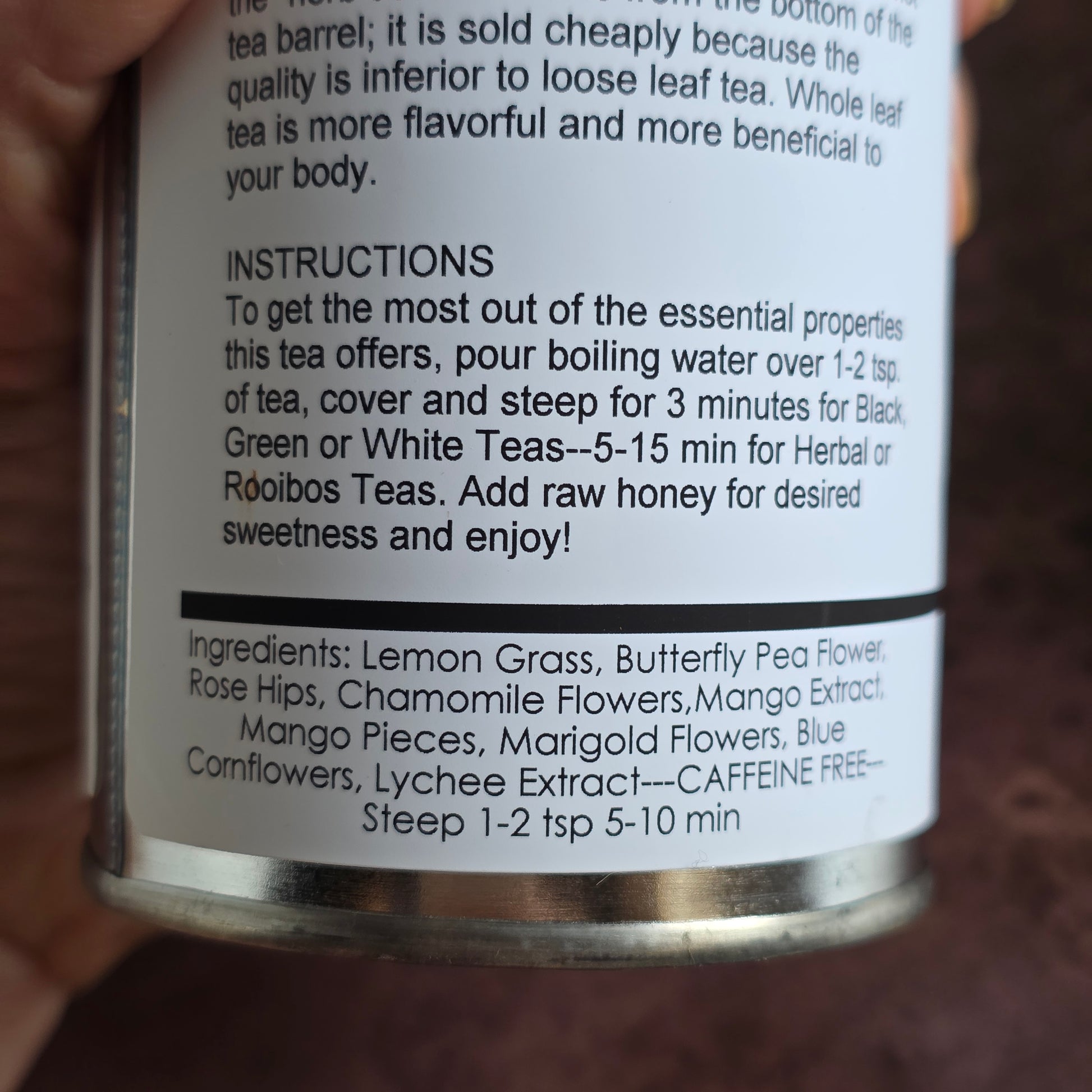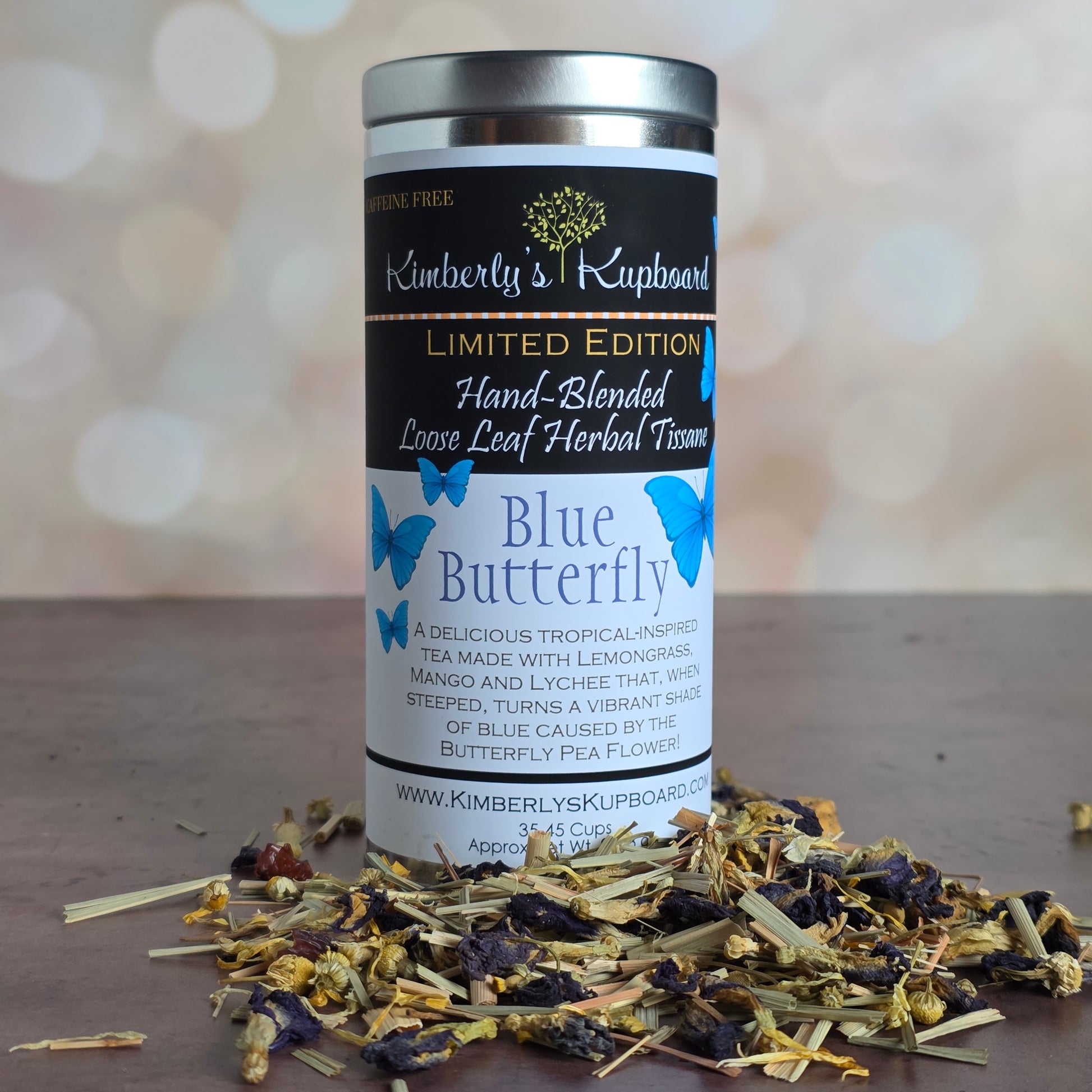 Kimberly's Kupboard Tea has been hand packaged, using the finest whole loose-leaf herbs. We recommend using teas which are in loose leaf form or in their whole botanical form and not the "herb dust" which is from the bottom of the tea barrel; it is sold cheaply because the quality is inferior to loose leaf tea.