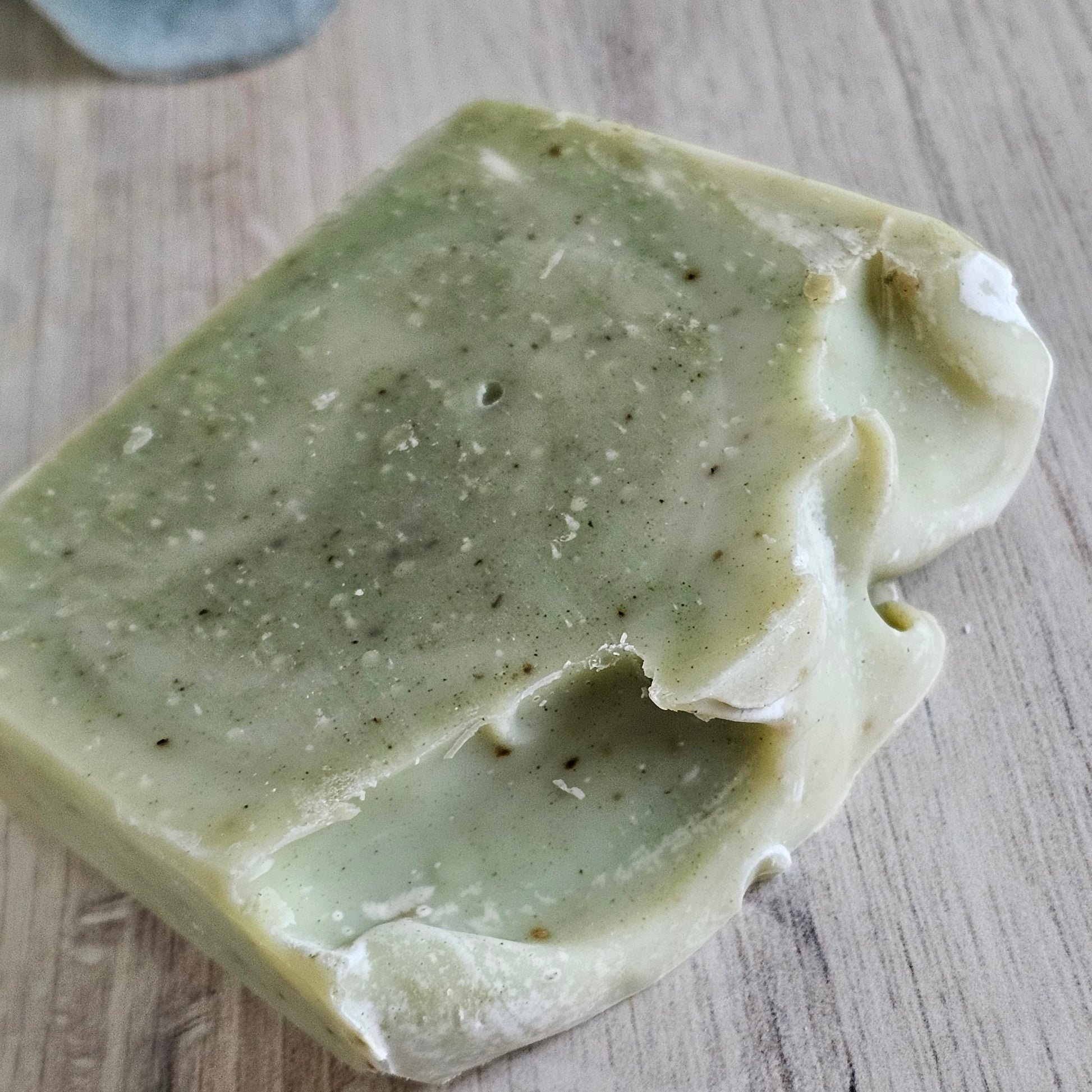 Cold Process Soap made with pure essential oils of Eucalyptus and Peppermint..smells incredible and a great wake up in the morning!!